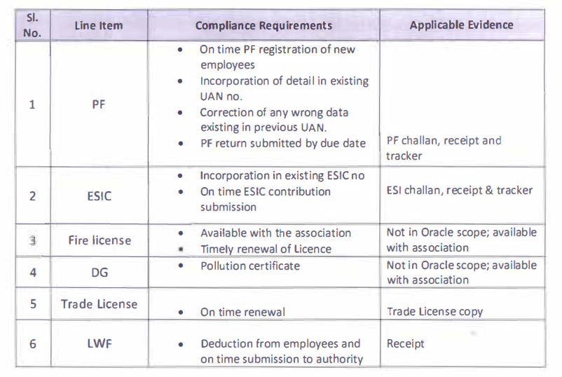 The purpose of this document is to underline the criticality of maintaining all the necessary legal compliances. This helps to govern and ensure all the statutory related payments like PF/ESI are submitted on time and other related documents are also maintained in a proper manner. The necessary certificates/licenses shall be renewed within timeline.